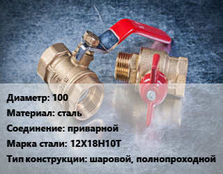 Кран металлический 100 сталь приварной Сталь: 12Х18Н10Т шаровой, полнопроходной