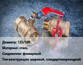 Кран металлический 125/100 сталь фланцевый шаровой, стандартнопроходной