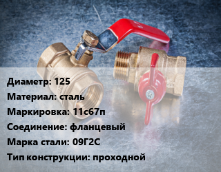 Кран металлический 125 сталь 11с67п фланцевый Сталь: 09Г2С проходной