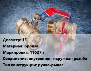 Кран металлический 15 бронза 11б27п внутренняя-наружная резьба ручка-рычаг