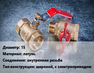 Кран металлический 15 латунь внутренняя резьба шаровой, с электроприводом