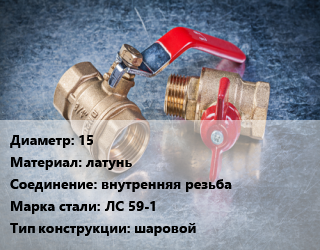 Кран металлический 15 латунь внутренняя резьба Сталь: ЛС 59-1 шаровой