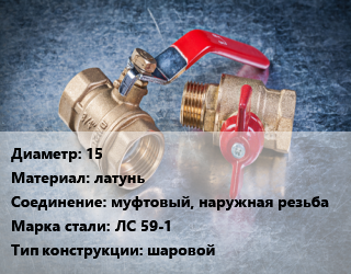 Кран металлический 15 латунь муфтовый, наружная резьба Сталь: ЛС 59-1 шаровой