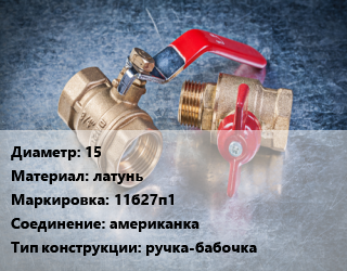 Кран металлический 15 латунь 11б27п1 американка ручка-бабочка