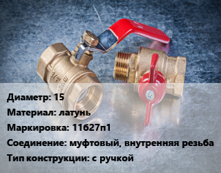 Кран металлический 15 латунь 11б27п1 муфтовый, внутренняя резьба с ручкой
