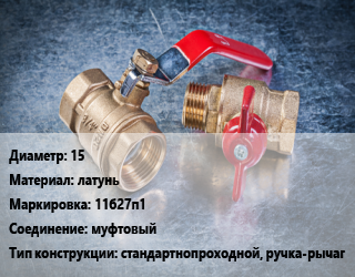 Кран металлический 15 латунь 11б27п1 муфтовый стандартнопроходной, ручка-рычаг