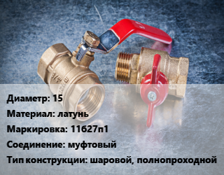 Кран металлический 15 латунь 11б27п1 муфтовый шаровой, полнопроходной