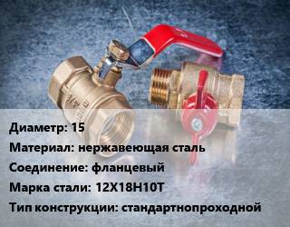 Кран металлический 15 нержавеющая сталь фланцевый Сталь: 12Х18Н10Т стандартнопроходной