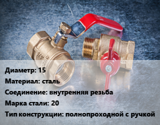 Кран металлический 15 сталь внутренняя резьба Сталь: 20 полнопроходной с ручкой