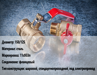 Кран металлический 150/125 сталь 11с933п фланцевый шаровой, стандартнопроходной, под электропривод