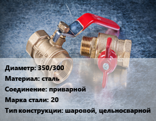 Кран металлический 350/300 сталь приварной Сталь: 20 шаровой, цельносварной