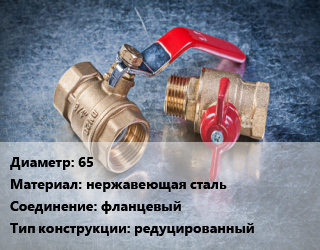 Кран металлический 65 нержавеющая сталь фланцевый редуцированный