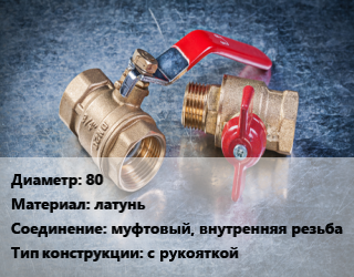 Кран металлический 80 латунь муфтовый, внутренняя резьба с рукояткой