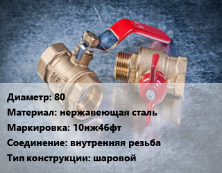 Кран металлический 80 нержавеющая сталь 10нж46фт внутренняя резьба шаровой