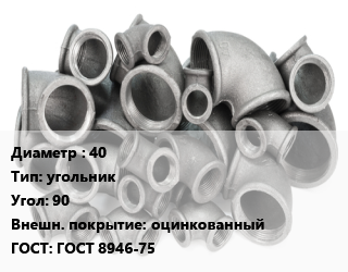 Отвод чугунный 40 угольник Угол:90 оцинкованный ГОСТ 8946-75, внутренняя резьба,внутренняя резьба, наружная резьба,резьбовой, шт цена от 193.05 сом / шт, где купить, условия доставки в Оше и Ошской области