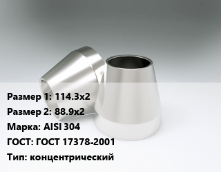 Переход нержавеющий 114.3х2х88.9х2 Сталь: AISI 304 ГОСТ: ГОСТ 17378-2001 концентрический