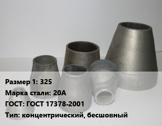 Переход стальной 325 Марка: 20А ГОСТ: ГОСТ 17378-2001 концентрический, бесшовный, шт цена от 129 869 сом / шт, где купить, условия доставки в Оше и Ошской области