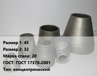 Переход стальной 45х32 Марка: 20 ГОСТ: ГОСТ 17378-2001 концентрический